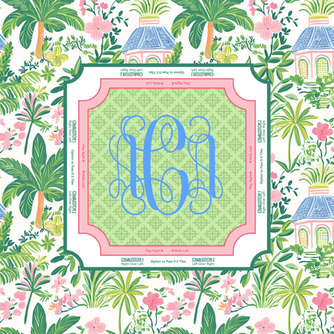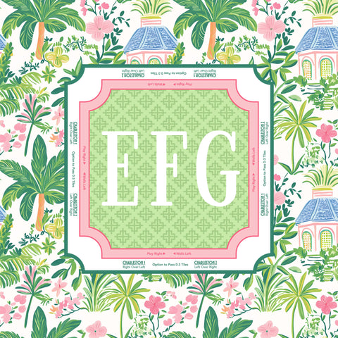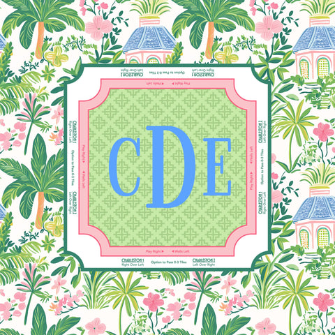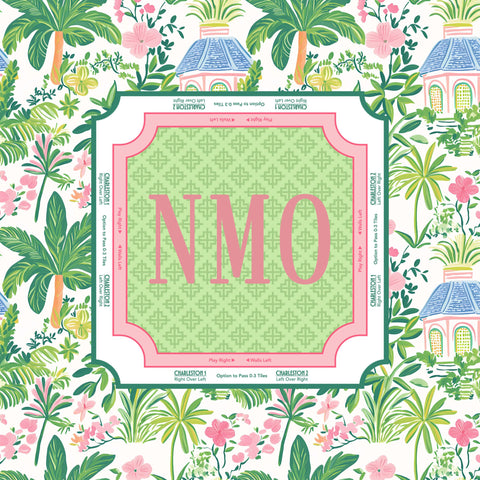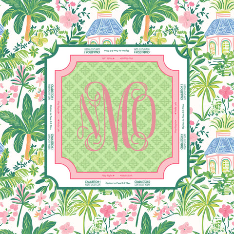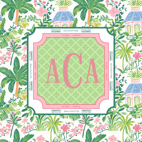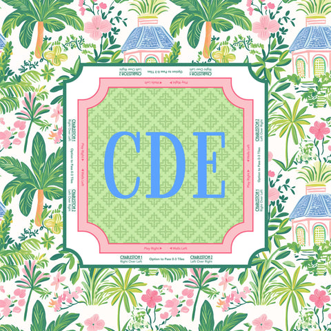 Bring the breezy, preppy vibes of the coast to your next game night with our Palm Beach Mahjong Mat. Featuring a lush tropical border of palms and pink florals, this mat is the ultimate tabletop accessory for players who love a touch of Southern charm.